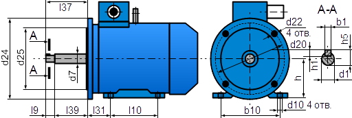 Присоединительные размеры Двигатель на Лапах и Фланце: